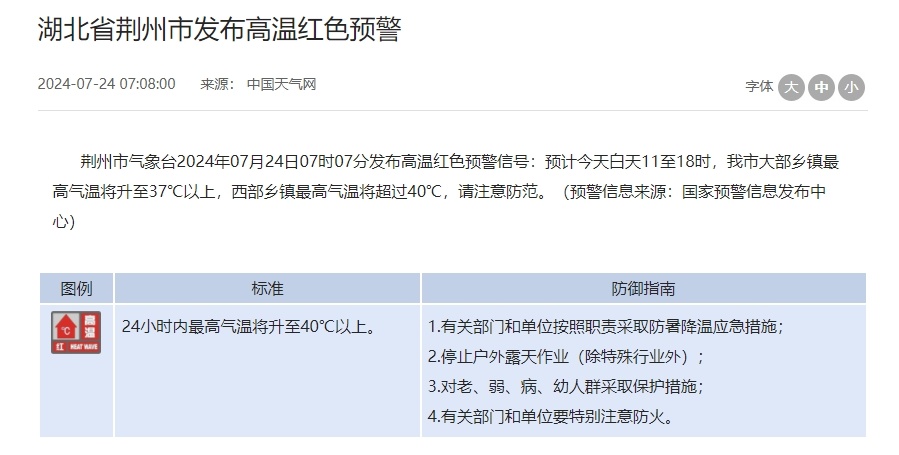 也发布了高温红色预警信号