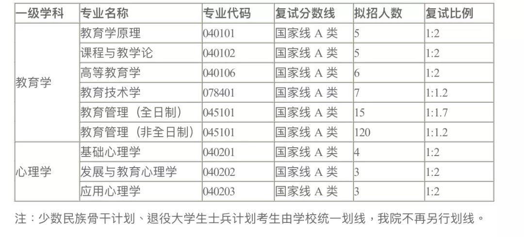 2019年我院计划招收全日制硕士生61人(含退役士兵计划1人),其中全日制学术型硕士28人(已招推免生6人)、全日制专业硕士 32 人(已招推免生4人)、退役士兵计划1人。所有学科专业复试分数线均不低于国家线。