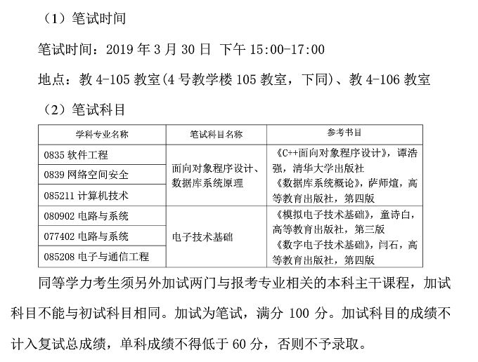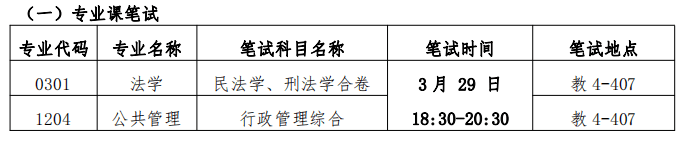 (一)专业课考试采取笔试形式,考试时间:3月29日18:30-20:30(专业课笔试地点资格审查时另行通知)。