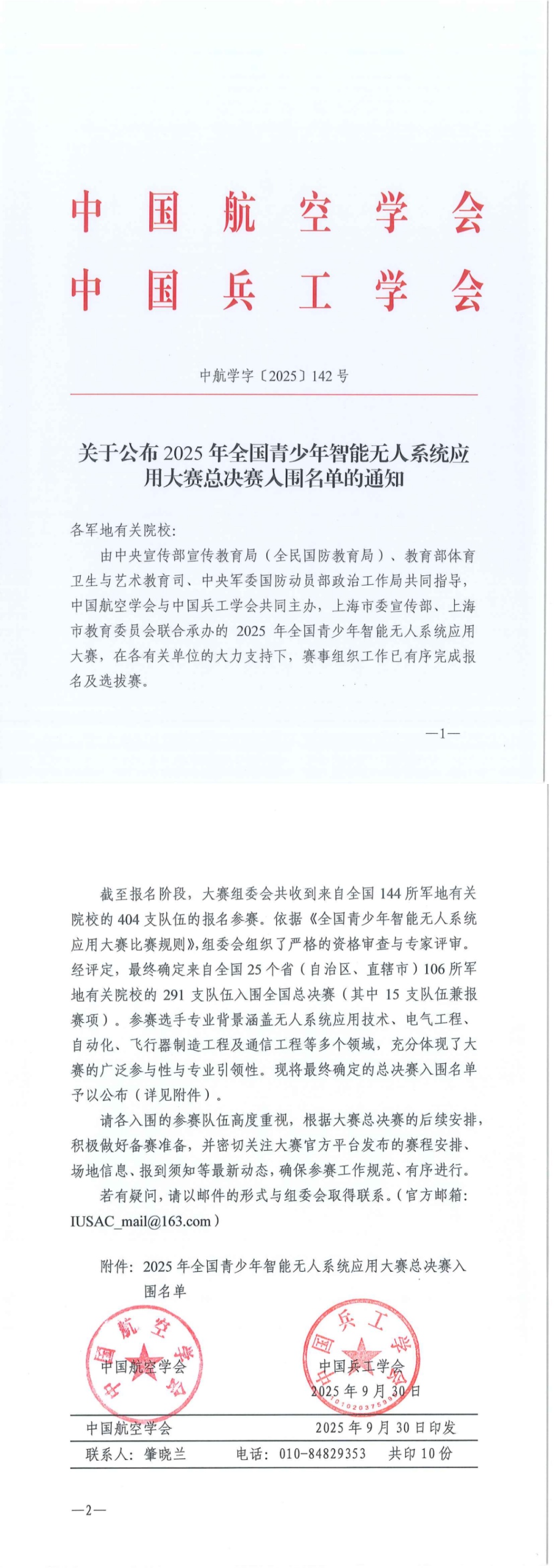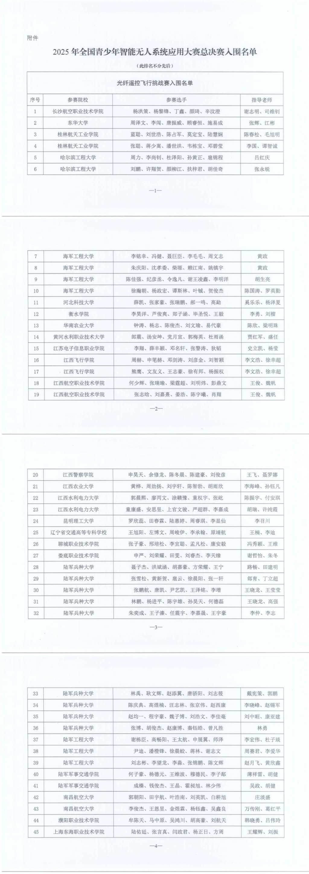 2025年全国青少年智能无人系统应用大赛总决赛入围名单已正式公布,海军工程大学、武汉东湖学院、武汉纺织大学、武汉文理学院等省内军地院校代表队入围总决赛,恭喜!