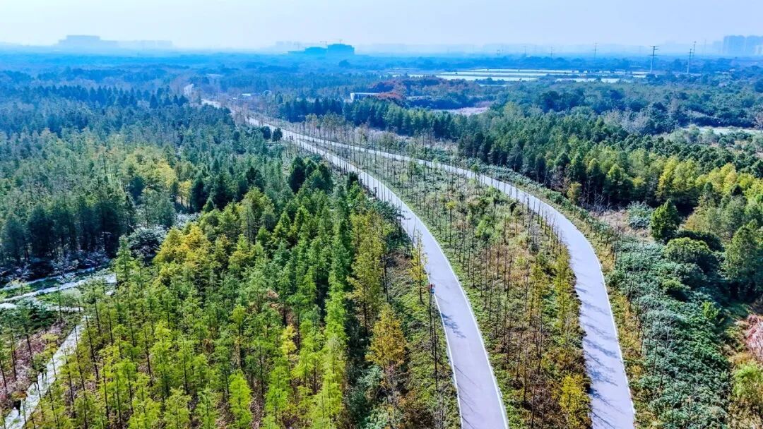 ◎荆州长湖湿地碧水彩林相映如画