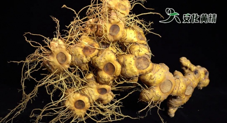 安化黄精根状茎肥厚,通常分枝2个以上,常数个块状结节相连。表面灰黄色或黄褐色,粗糙,结节上侧有突出的圆盘状茎痕,折断面颗粒状、淡黄色,气微,味甜,带黏性。