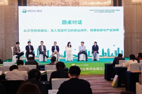 作为大会核心环节,智能环卫技术交流会以“从示范到规模化:无人驾驶环卫的商业闭环、政策机制与产业协同”为主题展开圆桌对话。侨银股份总裁夏冠明与库萨科技、伏泰科技、赛特智能等企业代表围绕技术创新、商业化落地、政策适配等关键议题深入探讨,凝聚行业共识。