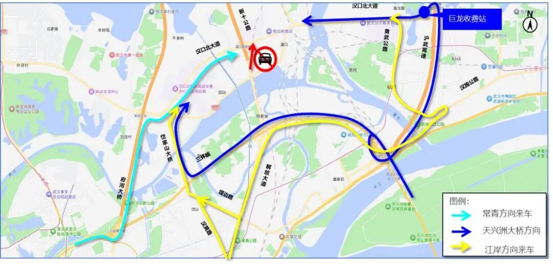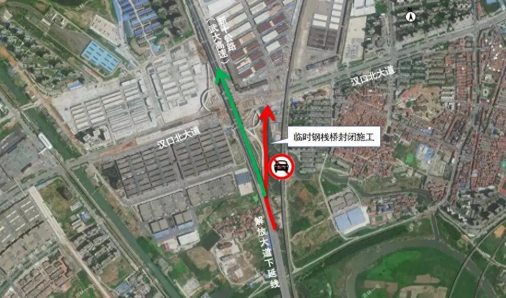 一、武大高速汉口北互通钢栈桥(解放大道下延线下汉口北大道)禁止机动车通行。