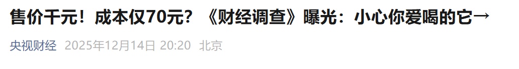 售价千元!成本仅70元?《财经调查》曝光:小心你爱喝的它→