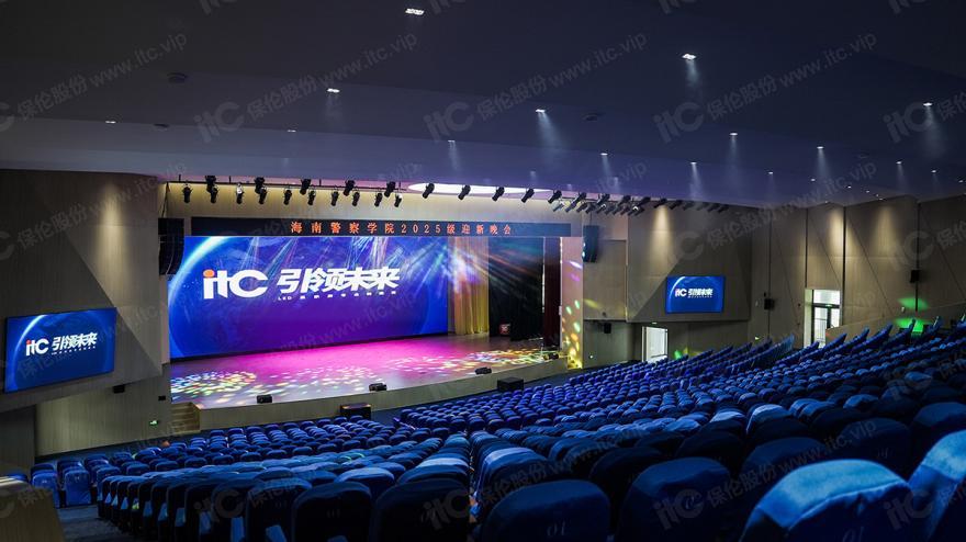 海南警院秉承“忠清为正,文武以成”的校训精神,定位为服务海南自贸港建设,以培养现代警务人才和高素质应用型法学人才为目标。itc紧密贴合学院发展思路,为学院高质量人才培养提供集声光影综合管理平台、LED显示屏、专业扩声、舞台灯光、舞台机械、数字会议、视频会议、中控矩阵等系统于一体的数字化音视频解决方案,为庄严的千人会堂、多功能阶梯教室及学术报告厅装上了“智慧大脑”,以科技之力助推高质量警务人才培养。