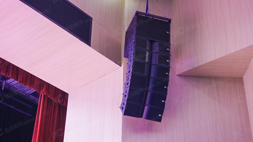 itc根据会堂建筑结构及会议、演讲、培训、比赛、演出等各类扩声需求,通过EASE软件进行声场分析,量身定制全套专业的扩声系统解决方案。2组线阵音箱作为会堂主扩声,分别吊挂于主席台两侧,投射距离远、灵敏度高、穿透力强,为会堂提供高清晰度和高穿透力的声音覆盖。同时配备辅助音箱、台唇音箱、返听音箱、超低频音箱,确保会堂每个角落都能听到清晰、饱满、均匀的声音,进一步提升现场观众的沉浸感。
