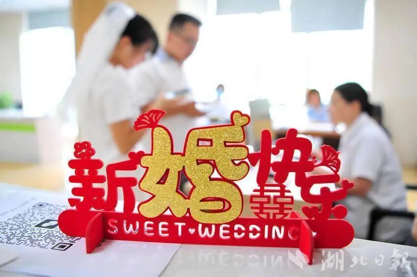 2025年8月29日,“七夕节”,在宜昌市夷陵区婚姻登记处,不少新人选在当天甜蜜领证。(图源:湖北日报客户端夷陵频道)