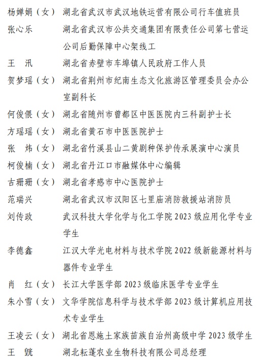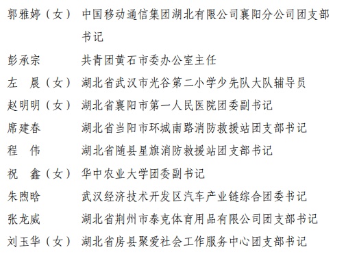 这52个先进集体与个人,既是新时代湖北共青团工作的优秀缩影,更是荆楚青年奋勇争先的奋进标杆。先进团组织坚守为党育人、为国育才使命,凝心聚力引领青年成长;优秀团员团干部扎根岗位、实干笃行,勇担时代重任,以实际行动践行“请党放心,强国有我”的青春誓言。他们以青春之力赋能荆楚高质量发展,以榜样之光凝聚奋进力量,书写新时代荆楚青年挺膺担当、奋勇争先的青春华章。