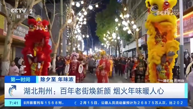 2月18日,央视财经频道聚焦荆州年味,播出《百年老街焕新颜 烟火年味暖人心》专题报道;