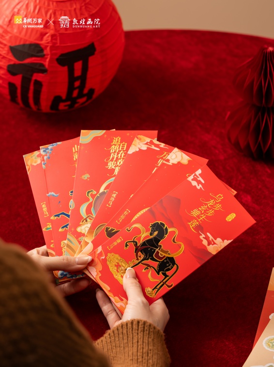 此次联名,敦煌画院从壁画“迦叶化百马”这一传说中汲取灵感,将千年石窟里的灵动骏姿,凝练为 “敦煌神马”IP。华润万家也将这份跨越时空的祥瑞祝福制成了独家联名的敦煌神马红包;同时,华润万家亦同步呈现多款精美敦煌系列周边,让文化走出壁画,走进柴米油盐。