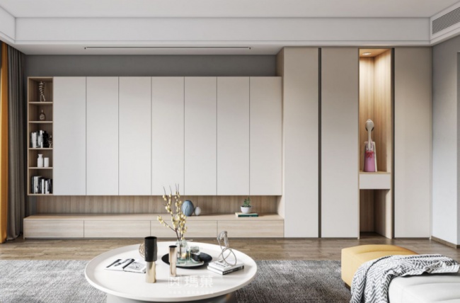膜压工艺以纤维板为基材,通过精密铣型雕刻出各种立体线条,再覆以高品质的PVC膜皮,经德国进口温康纳真空吸塑机一次成型。该工艺所采用的膜皮自带防刮涂层,耐磨抗污,且经过严格抗光测试,不易变色,一体成型的工艺确保表面光滑平整无气泡,将艺术美感与实用性能紧密结合。依托该工艺制作的产品,造型立体且样式丰富,能够满足多元化的风格设计需求。