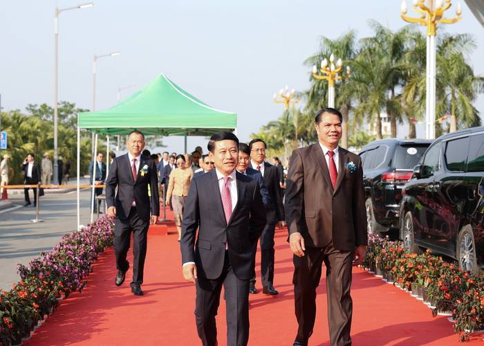 老挝国家副总理沙伦赛·贡玛西、前副总理宋沙瓦·凌沙瓦、公共工程与运输部部长烈莱·西维莱、总理府办公厅主任波空·南玛翁、博胶省委书记边康·布占鹏、金三角经济特区管委会副主席高嵘、金木棉集团有限公司总裁孙杰等嘉宾共同为通航仪式剪彩。