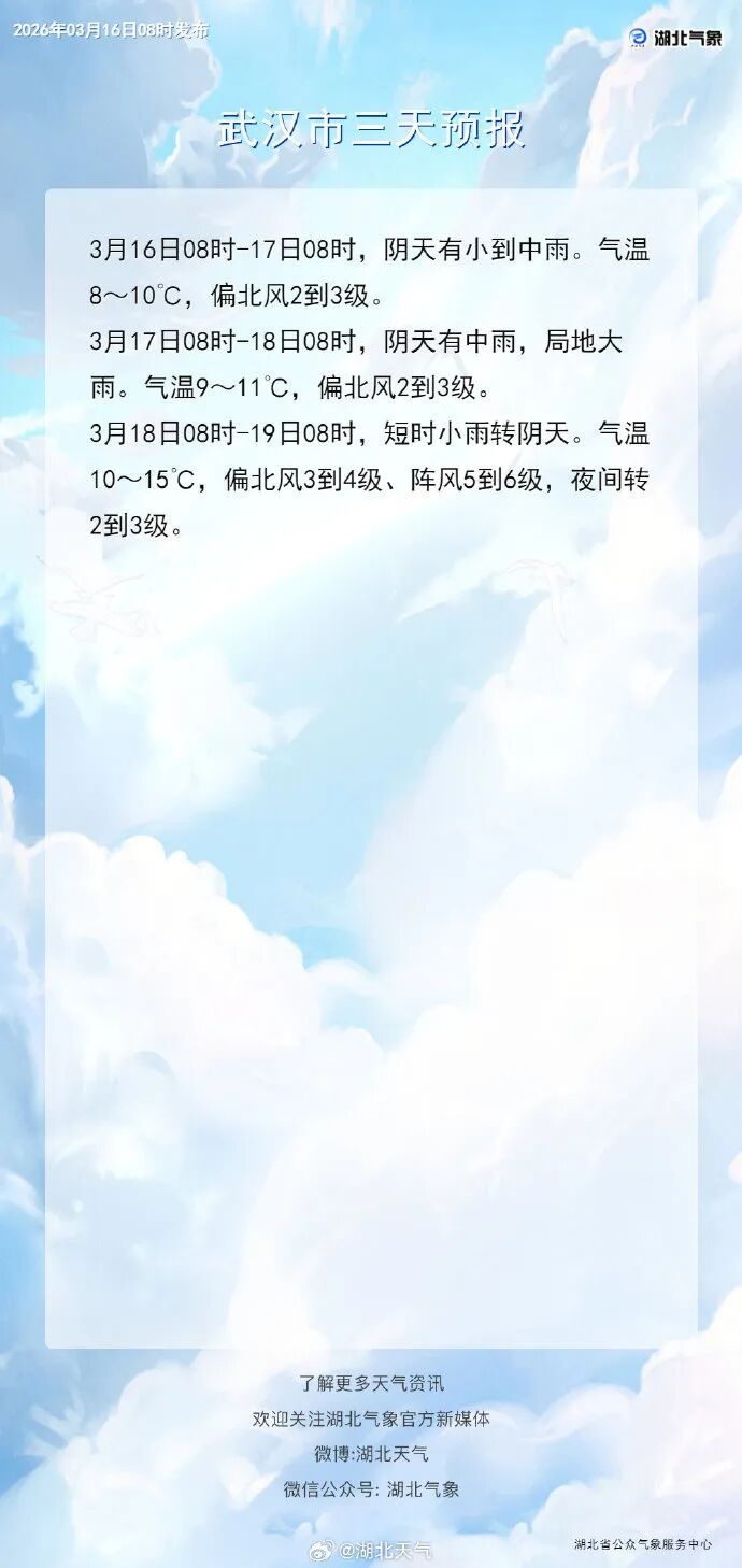 明天(17日)鄂西北小雨转阴天