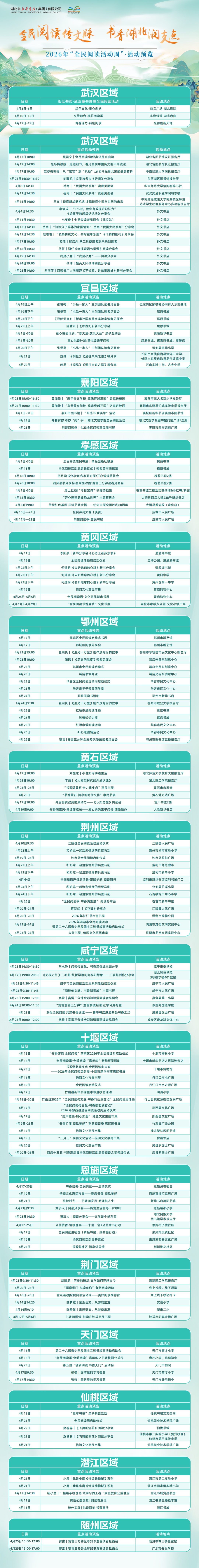 3月下旬至4月底,全省新华书店全域联动,500+场活动、百余位名家,覆盖城乡社区、校园、广场、商圈,全龄适配、全民参与,让书香浸润荆楚每一个角落。