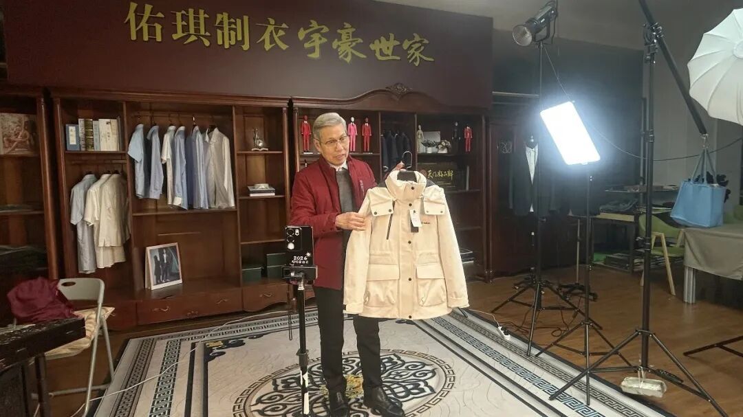 随着电商经济迅猛发展,2024年,75岁的张晓林开辟新赛道:亲自上阵直播带货。多年的行业积淀,让他对面料、工艺有着近乎本能的敏感。“快返模式最难控制的就是品质,但品质恰恰是生命线。”直播间里,他反复强调“品质哲学”,这份真诚反而形成了独特的吸引力。