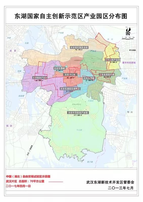 2010年,《东湖国家自主创新示范区总体规划(2011-2020年)》出炉。根据规划,“大光谷”将扩大至518平方公里,形成“一轴六心、三区两城、两楔多廊”的空间格局。其中,花山被定位为“四大支撑中心”。