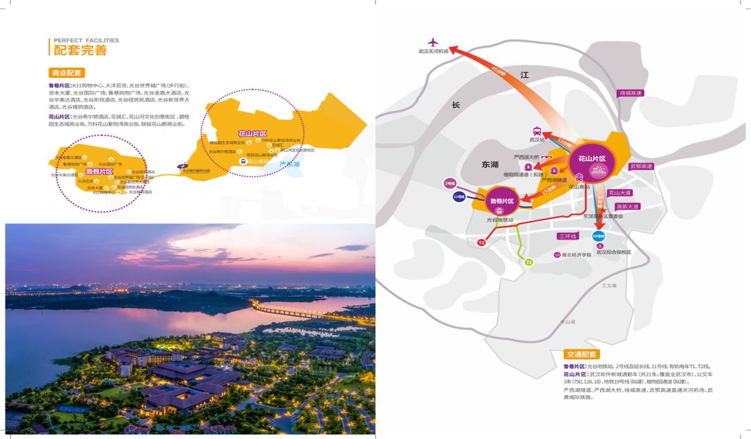 同时,项目距离三环线仅4公里,享有地铁19号线(已动工)便利,通达武汉三镇主城核心;周边拥有“花山河”商业街,总体量为3个楚河汉街,距离项目1公里的花城汇商业街目前已开业。