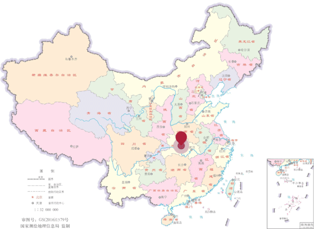 中国地图上的荆门“天元”位 示意图