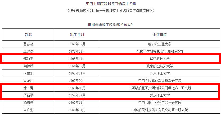 其中华中科技大学共有2位新晋院士