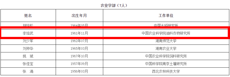 中科院院士增选初步候选人