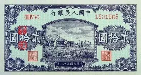 中国人民银行原副行长马德伦主编的《中国名片人民币》一书中,只提到了“4个品种、4种原版”。记者多方查询资料了解到,第一套人民币中的“20元六和塔”蓝色版本,正是由中原印刷厂在1949年5月至9月间印制。该钞正面为杭州六和塔和牛群图,发行量极少。