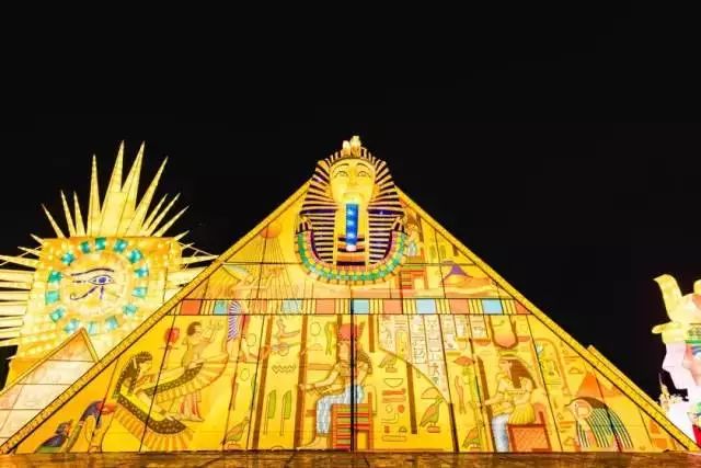 本届东湖灯会首次在武汉欢乐谷举办,8大异域主题灯区,从埃及到中国,从亚洲到欧美,88组世界风情灯组大赏,不出远门,就可赏遍全球名胜,环游世界。