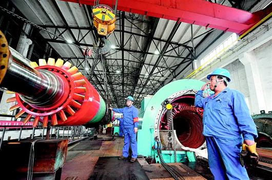 3月28日,潜江市正豪华盛铝电有限公司技术员在安装1号发电机组转子。该机组通过科技创新使煤耗降低,带来明显的经济效益和社会效益。近年来,潜江市加大科技创新力度,加快新旧动能转换步伐,石油化工、纺织服装等优势传统产业加快淘汰落后工艺技术和设备,企业焕发生机活力。(视界网吴燕军摄)