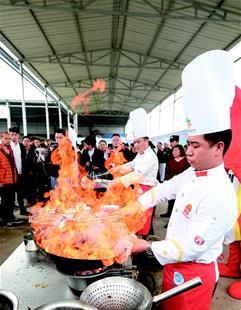 图为:近年,潜江加大小龙虾职业技能培训力度,龙虾大师班、龙虾名师班、龙虾养殖技师班等相继开班,每年培训学员超过千人,学员遍布上海、浙江、内蒙古等10多个省市区。图为潜江烧虾师傅烹饪小龙虾。 (视界网 吴燕军 摄)