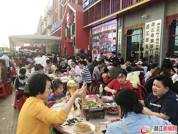 今年“五一”小长假,潜江迎来最“燃”吃虾季。每天,潜江生态龙虾城都是人山人海,食虾客来得早的幸运地大快朵颐,稍晚到的只好在虾“海”外围大排长龙……