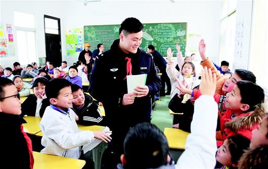 2月25日,潜江市园林第一小学学生现场回答铁路民警的提问。