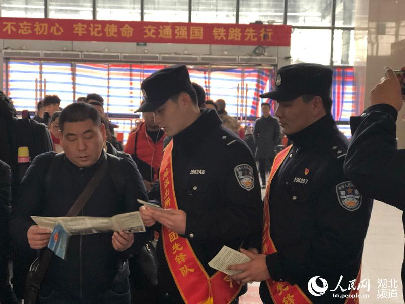 潜江火车站迎客流高峰 民警护航春运保旅客平安出行