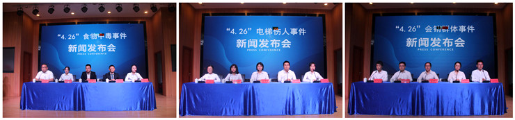 活动以小组为单位,分别以“食品中毒事件”、“电梯伤人事件”、“会销群体事件”等3件突发事件应对为主题,展开新闻发布会情景演练。每组参赛者分别模拟市政府、市公安局、市应急管理局、市市场监督管理局等部门主要领导及各职能部门负责人,就各部门在突发事件中承担的责任以及应对的办法展开模拟应答。同时,现场还有模拟的媒体记者代表,对政府官员进行现场提问。