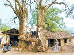 9月11日,永州市文物部门在该市零陵区珠山镇雨脚塘村发现了约600年树龄的连体古树——重阳木树。因这古树有一枝干相连,其中一棵开花结籽,另一棵只开花不结籽,人们称其为“爱情树”。现在,该树的树心空了,叶子也不再茂盛,能否继续生存令人堪忧。人们希望有关部门能对古树进行抢救和保护。
