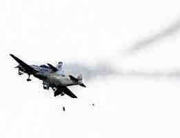 【图文】一架飞机18日在德国南部地区参加航空展飞行表演时与另一架飞机相撞,坠毁后起火,致使1名飞行员死亡。