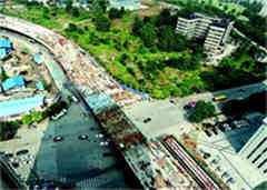 备受关注的武昌二环线珞狮路高架桥,主线终于在近日全线合龙。施工方项目负责人昨日介绍,该工程定于今日开始刷黑,确保下月底建成通车。二环线珞狮路高架桥南起武汉理工大学马房山下穿通道,向北跨武珞路街道口、八一路、洪山侧路,止于东湖隧道南入口,全长1726米。主线双向4车道,宽18米,设有6条上下桥匝道。