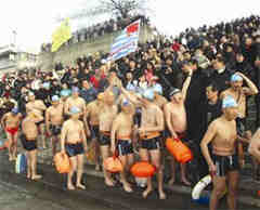 【图文】昨日下午2时许,长江汉阳门江段风力达到四级,水温只有9.2摄氏度。119名冬泳爱好者从此下水,劈波斩浪横渡长江。