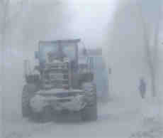图为:清雪车辆在黑龙江依勃公路依兰段清扫路面积雪。