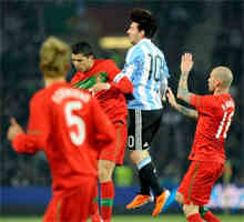 10日凌晨4点,国际足联比赛日的一场焦点热身赛在瑞士的日内瓦球场展开,对阵的双方是南美豪门阿根廷和欧洲劲旅葡萄牙。上半场梅西助攻迪马利亚破门,C罗扳平比分,双方战成1-1;下半场梅西点球建功,最终阿根廷2-1战胜葡萄牙。