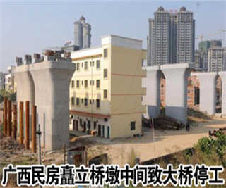 【广西民房矗立桥墩中间致大桥停工】