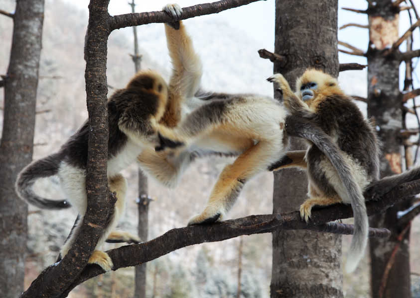 大龙潭金丝猴科研观赏区位于神农顶景区的东北部,接近自然保护区的入口。大龙潭因一处泉眼深潭而得名,这里有全球首个金丝猴野外研究机构一中国神农架金丝猴保护研究基地。蓝面仰鼻、身背金色长毛的神农架金丝猴在原始森林里追逐嬉戏,尽情打闹,清脆的”咦、哦”叫声不时回荡在山谷。神农架在国内率先通过人工补食的举措,实现对野生金丝猴的成功招引,使这里的金丝猴克服了对人的恐惧心理,大胆走近人类,它们可以爬到您的肩膀上,伸手去抓您的镜头…,尽情演绎人与动物、人与大自然的和谐之美。