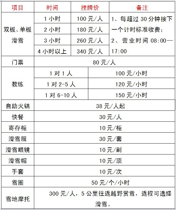 特别申明:本次奖品仅为滑雪场景区门票,门票有效期为2013年12月8日——2014年3月8日。其它消费项目见文章页末端价格表,游客可自行选择进行消费。