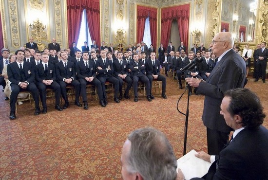 在输掉了欧洲杯决赛之后,意大利队从基辅飞回了罗马。意大利总统乔治-纳波利塔诺在奎里纳勒宫接见了意大利众将。