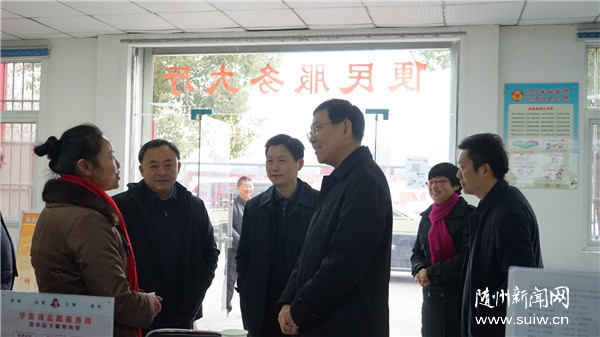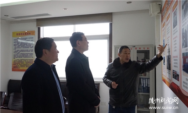 随州新闻网讯(全媒体记者 张琴)1月8日,市委书记陈瑞峰在湖北江南专用特种汽车有限公司、曾都区北郊办事处八里岔社区调研基层党建工作时强调,要坚持以习近平新时代中国特色社会主义思想为指导,深入学习贯彻习近平总书记视察湖北重要讲话精神,全面落实新时代党的建设总要求,把党的政治建设摆在首位,不断提升基层党组织的凝聚力战斗力,以党建引领基层治理、引领事业发展。市委常委、组织部长甘国栋参加调研。