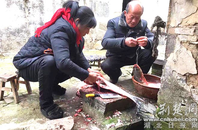 现场,经强村贫困户瞿连得感动地泪流满面。“米油能吃好几个月,鱼和肉也腌好了,谢谢你们!”今年56岁的瞿连得和妻子都是残疾人,行动不便。志愿者们冒着严寒帮助他们腌制好鱼肉,打扫了房间卫生。