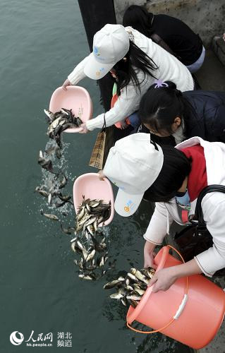 人民网随州2月14日电 昨日,湖北省随州市曾都区农业局、区水产局、区渔政监督管理站就在城区白云湖畔开展以“保护渔业资源,造福母亲湖”为主题的2019年渔业资源增殖放流活动,现场投放花鲢、白鲢、草鱼、鲫鱼等鱼苗4万尾。