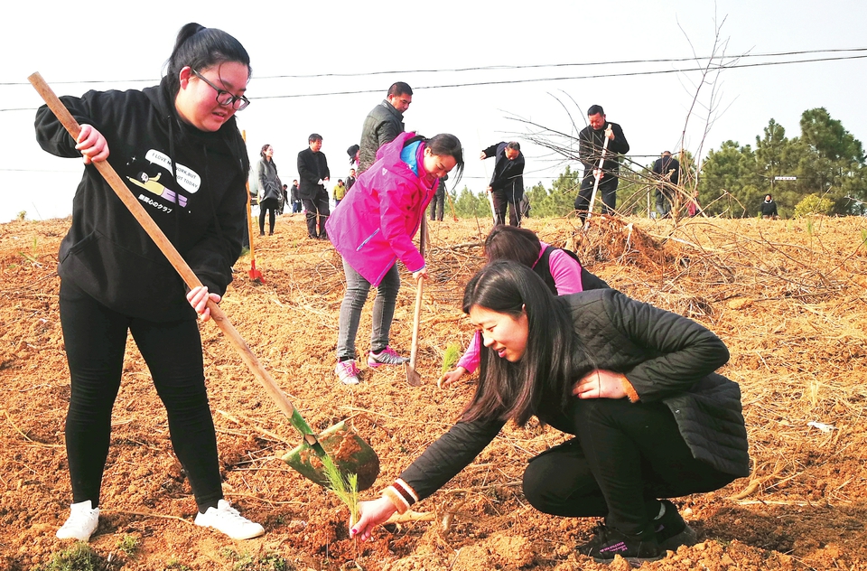 3月7日,随县厉山镇财政所女干部踊跃参加义务植树活动,喜迎“三八”妇女节。(随州日报全媒体记者徐斌、通讯员蔡玲、龚承斌摄)