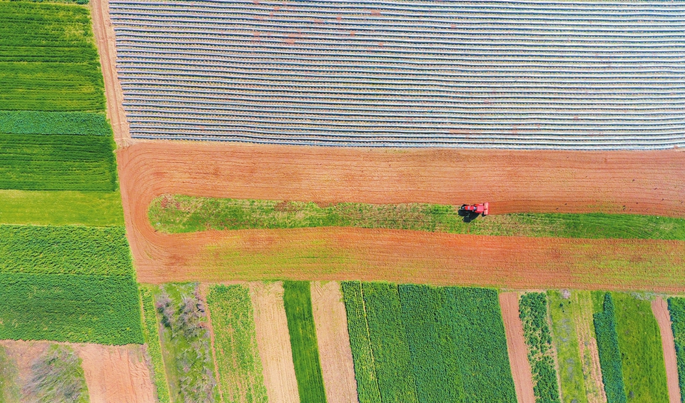 春回大地,生机盎然。田园如同一幅锦缎。图为随州高新区淅河镇余家畈,农民驾驶拖拉机翻耕土地。(随州日报全媒体记者徐斌摄)