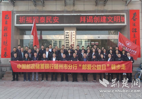 荆楚网客户端—荆楚网消息(通讯员 万敏)为进一步培育中国邮政储蓄银行公益文化,推动邮爱公益项目,践行国有大行责任担当,3月20日,邮储银行随州市分行开展了邮爱公益日健步走活动。