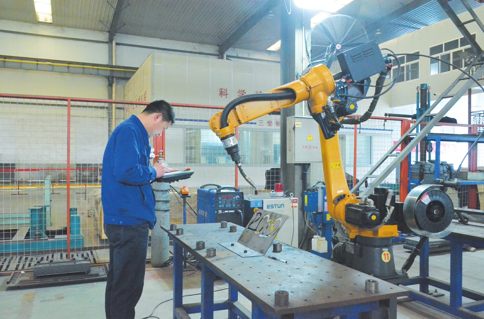 近来,我市智能制造加速推进,机器换人加快步伐。图为齐星集团智能化生产车间内,参加技能竞赛的工人正在操作工业机器人。(随州日报全媒体记者刘诗诗通讯员张雨摄)